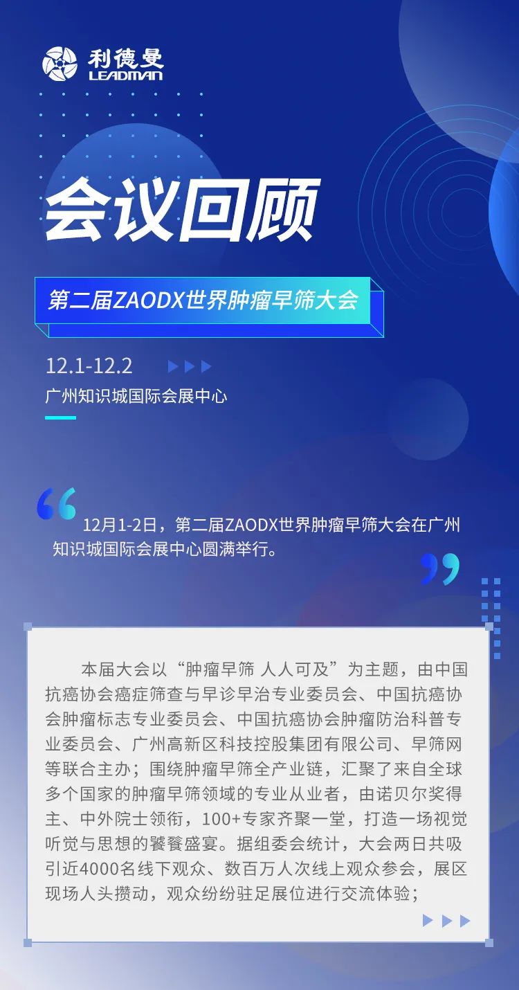 会议回顾丨第二届ZAODX世界肿瘤早筛大会在穗圆满举办,ld体育网址-ld体育欢迎你助力肿瘤早筛科技成果转化和应