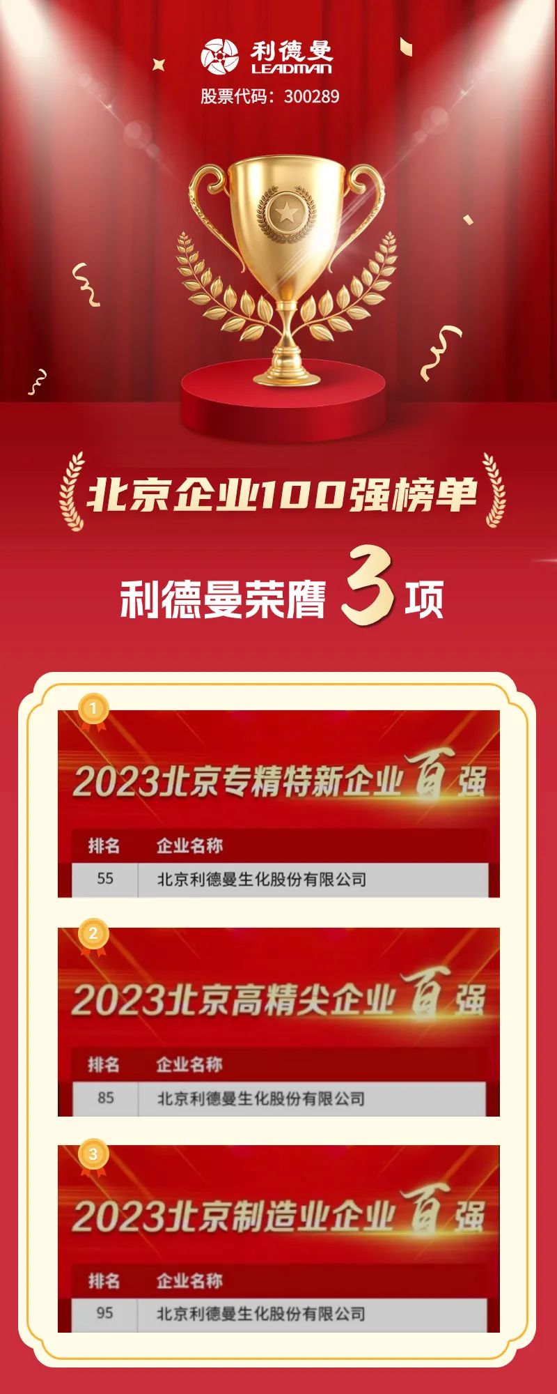 喜讯丨ld体育网址-ld体育欢迎你荣登2023北京百强企业三大榜单!