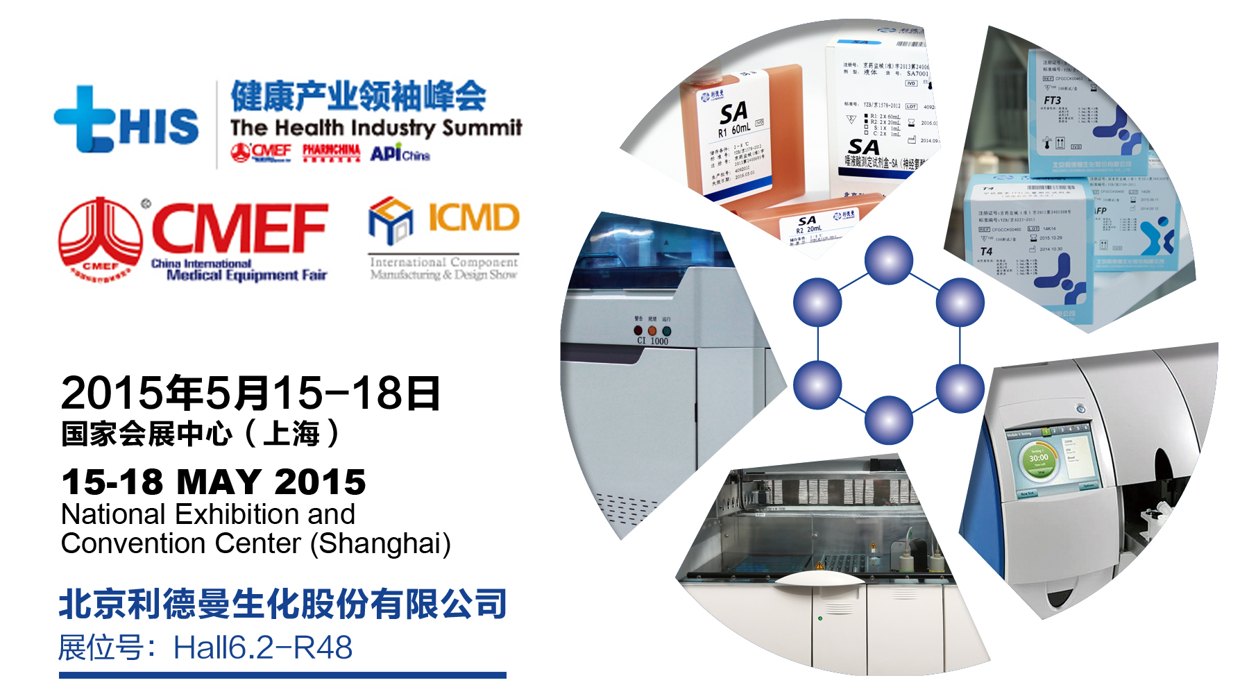 5月15日,ld体育网址-ld体育欢迎你“生物科学之花”将绽放于上海“四叶草”,展位号:Hall6.2 –R48。届时将向观众展示ld体育网址-ld体育欢迎你生化诊断试剂新成员以及系列仪器:CI1000全自动化学发光免疫分析仪、IDS-iSYS全自动生化免疫分析仪、德赛Respons920台式任选型全自动生化分析仪、Enigma® ML全自动化分子检测平台等仪器。更有最新推出的CM4000全自动血凝分析仪首次亮相CMEF,敬请期待。
