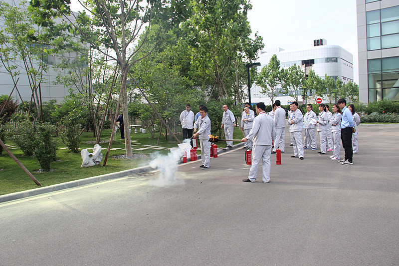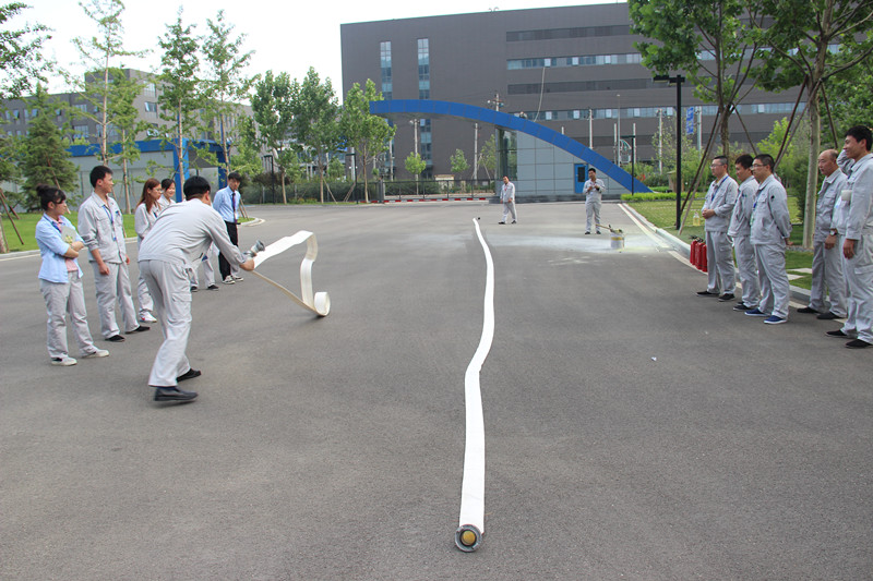 本次培训的另外一个模块,是由王保全组织员工于南侧大门空旷场地处共同学习如何使用灭火器和水带。经过王保全通俗易懂的讲解,员工们很快就掌握了基本的消防器材理论知识。接着,王保全进行了现场示范。他一边演示,一边向员工们讲解动作要领,之后还手把手地教大家如何正确使用消防器材,并对不同类型的灭火器,如二氧化碳、干粉、手推式灭火器等都做了详细的说明。