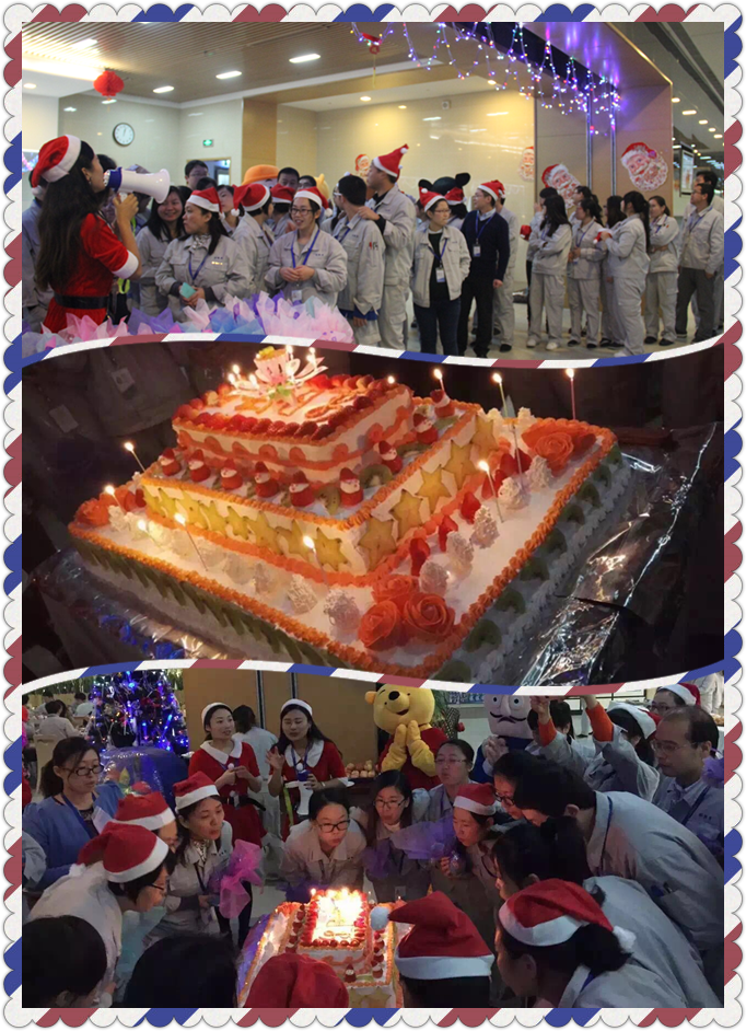 中午12点,还有特殊的惊喜等着大家———第四季度生日派对。在优美的《生日歌》声中,工作人员将员工餐厅自制的精美蛋糕推了出来,寿星们围着蛋糕许下了各自美好的愿望,2位圣诞“小公举”还将精心包装的平安果送给各位寿星,由行政办公室同事扮演的圣诞老人将精美的蛋糕分发给现场所有的朋友们,各式玩偶也频频闯入镜头~~~~大家都纷纷与圣诞老人和玩偶们合照,现场气氛非常活跃。